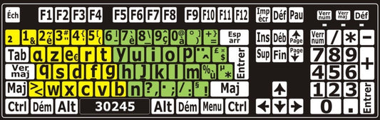 Autocollants lettres majuscules pour clavier Windows français (France) Blanc sur noir - 30182