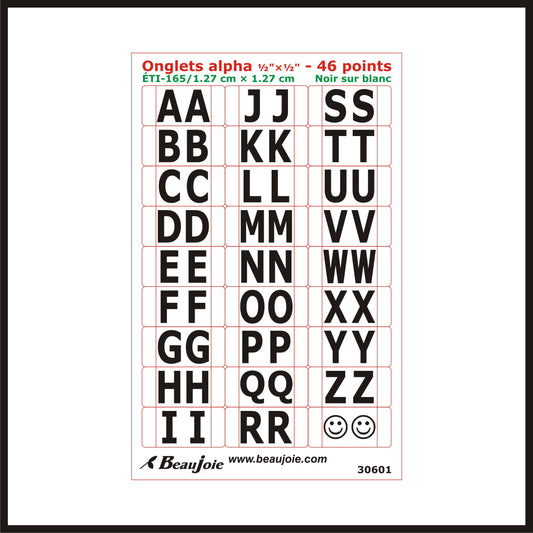 Autocollants pour onglets alphabétiques - blanc sur noir 30602