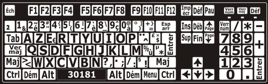 Autocollants lettres majuscules pour clavier Windows français (France) Noir sur blanc - 30181