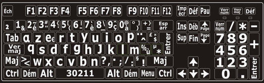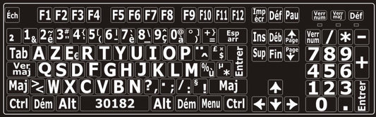 Autocollants lettres majuscules pour clavier Windows français (France) Blanc sur noir - 30182