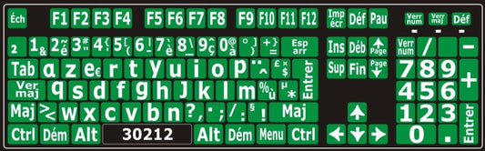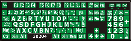 Autocollants lettres majuscules pour clavier Windows français (France) Blanc sur vert - 30204