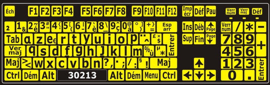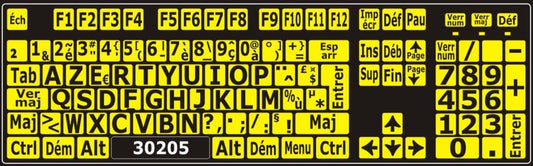 Autocollants lettres majuscules pour clavier Windows français (France) Noir sur jaune - 30205