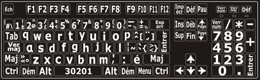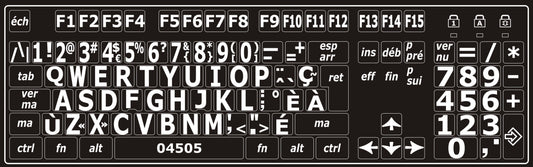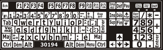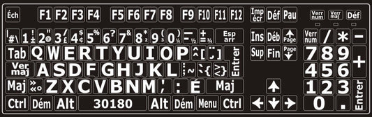 Autocollants pour clavier Windows français (Canada) Blanc sur noir (majuscules) - 30180