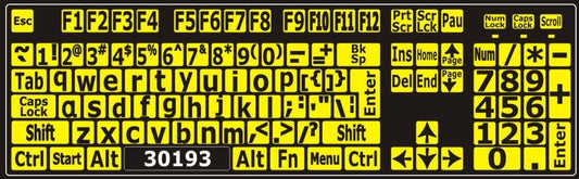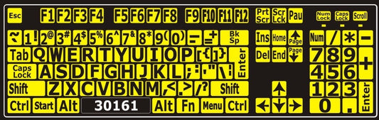 Autocollants lettres majuscules pour clavier Windows anglais (États-Unis) Noir sur jaune - 30161