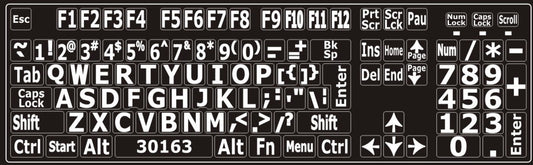 Autocollants lettres majuscules pour clavier Windows anglais (États-Unis) Blanc sur noir - 30163
