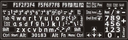 Autocollants pour clavier Windows normalisé ACNOR Blanc sur noir (majuscules) - 30228