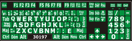 Autocollants pour clavier Windows français (Canada) Blanc sur vert (majuscules) - 30197