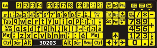 Autocollants pour clavier Windows français (Canada) Noir sur jaune (minuscules) - 30203