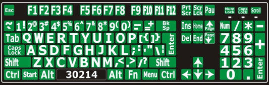 Autocollants lettres majuscules pour clavier Windows anglais (États-Unis) blanc sur vert - 30214