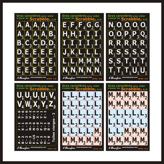 Autocollants pour Scrabble français - blanc sur noir - 30701