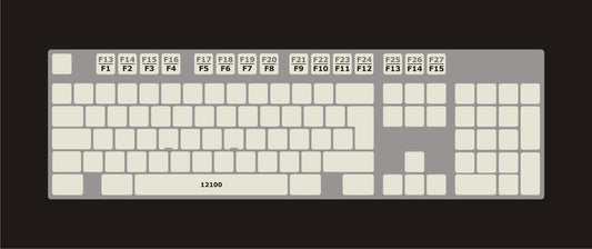 Autocollants pour touches F1 à F27: Fonctions noir + gris sur beige - 12100