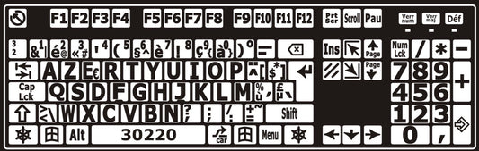 Autocollants lettres majuscules pour clavier Windows français (Belgique) Noir sur blanc - 30220