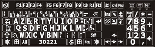 Autocollants lettres majuscules pour clavier Windows français (Belgique) Blanc sur noir - 30221